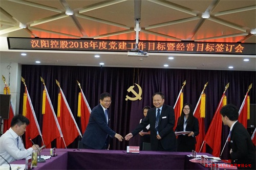 2018年4月28日上午,武漢市漢陽控股集團(tuán)有限公司于金龍公館寫字樓11樓大會議室舉行了2018年度黨建工作目標(biāo)暨經(jīng)營目標(biāo)簽訂會。